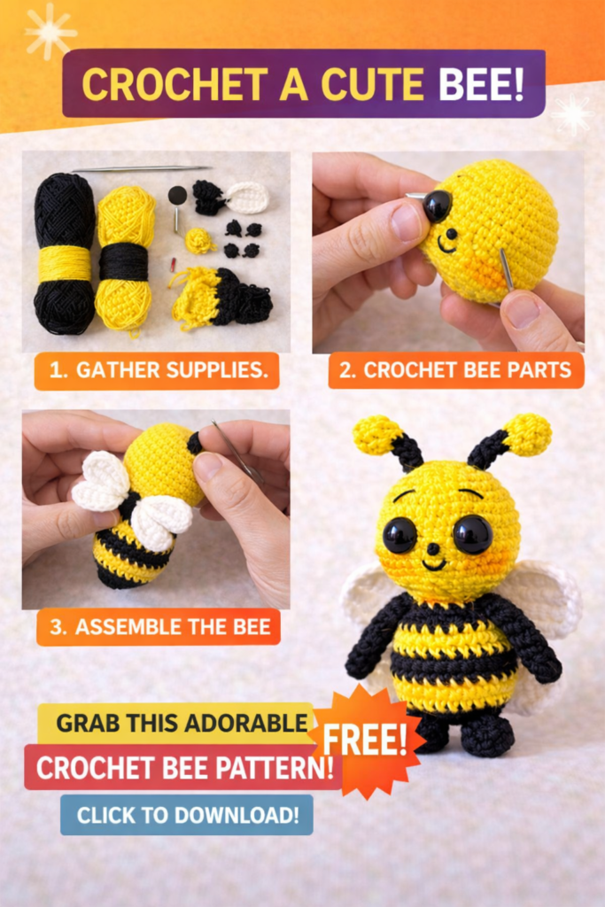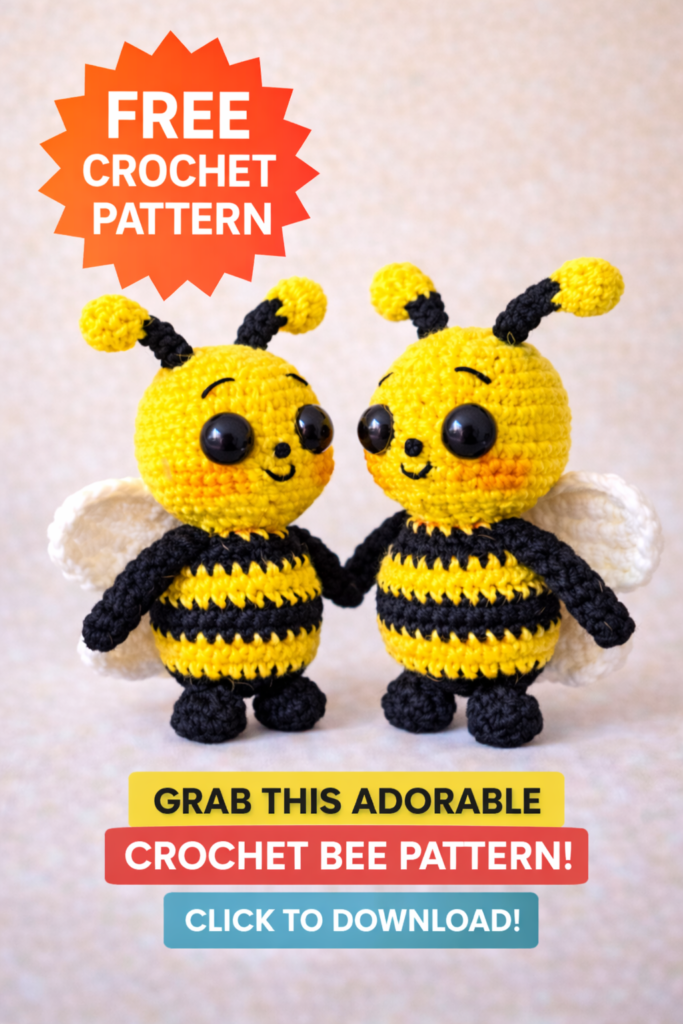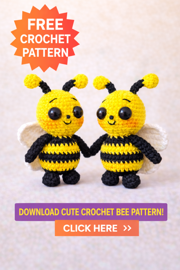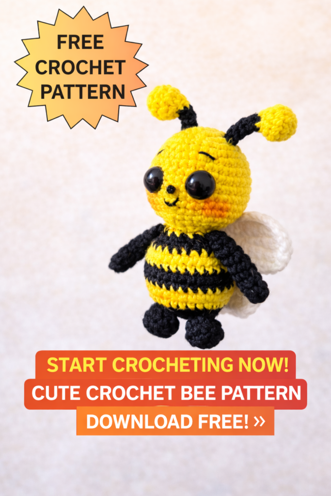 Bee Amigurumi Free Pattern is a cute and beginner-friendly crochet project for anyone who loves handmade toys. This free crochet bee pattern is designed using simple amigurumi techniques and standard US crochet terms, making it perfect for both beginners and experienced crocheters. If you are searching for an easy amigurumi bee, crochet bee toy, or a small cute amigurumi pattern, this Bee is a great choice for gifts, nursery decor, or craft fairs.
